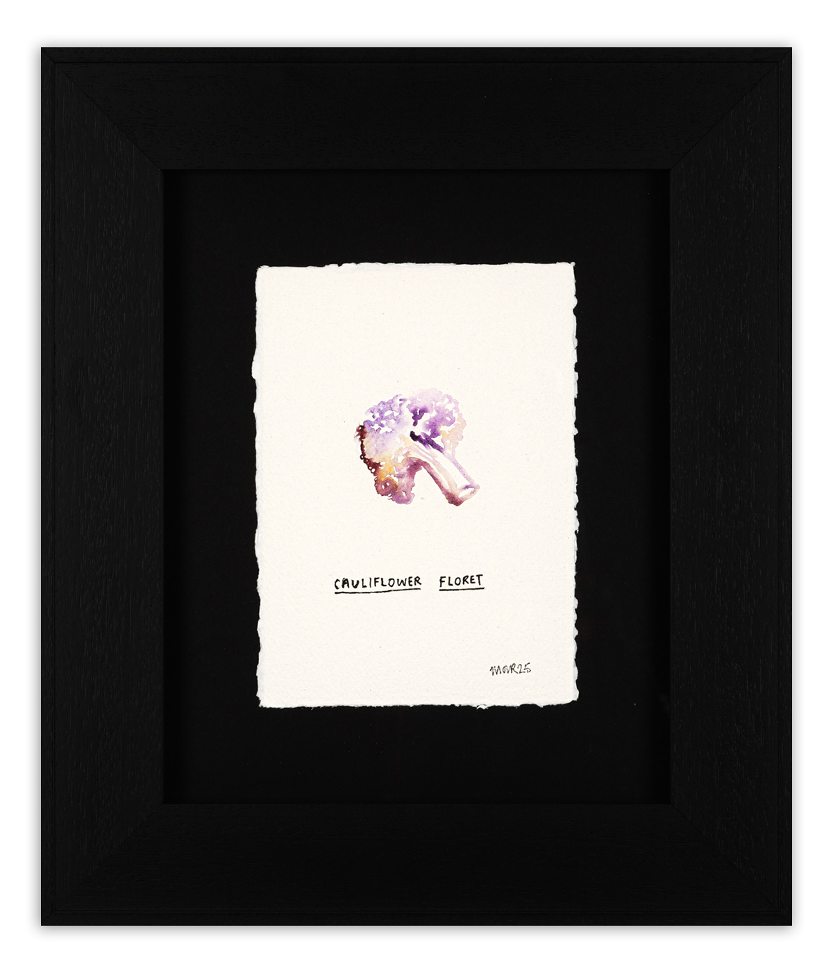 From Jim Moir’s Scran series. A small cauliflower floret painted with subtle purple and cream tones.
