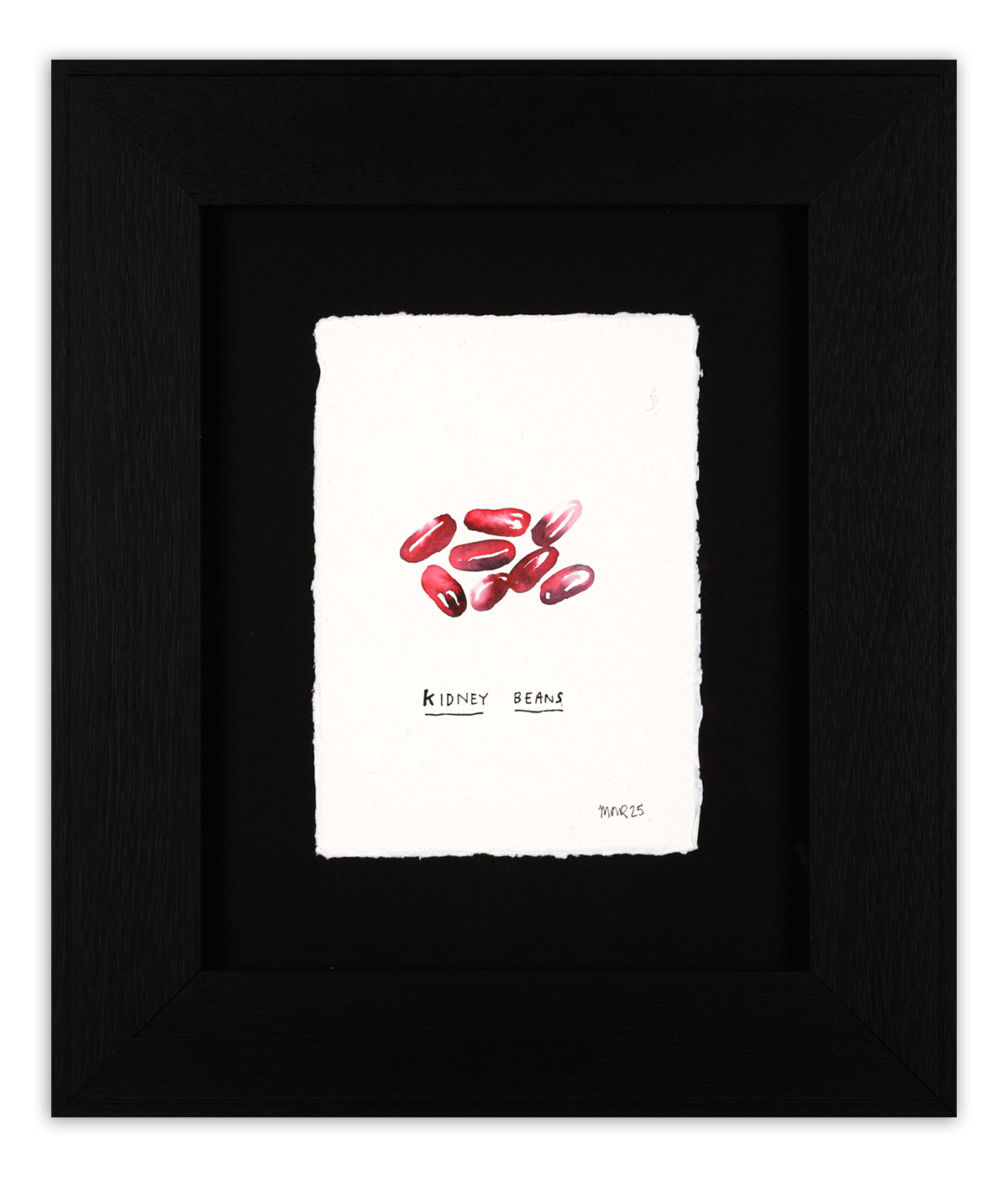 From Jim Moir’s Scran series. A cluster of kidney beans painted with small highlights and bright reds.