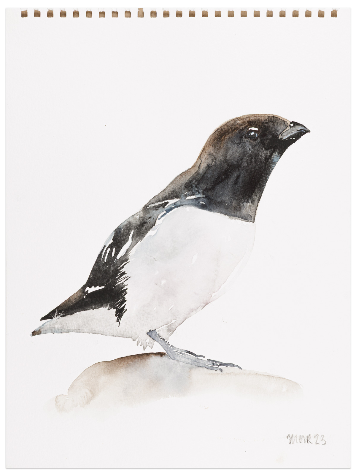 From Jim Moir’s More Birds series. A little auk picked out in inky blacks and soft greys.