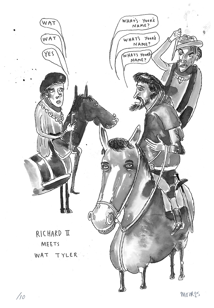 Each monarch and moment is rendered in Moir’s distinctive illustrative style — humorous, human and ever so slightly mischievous.