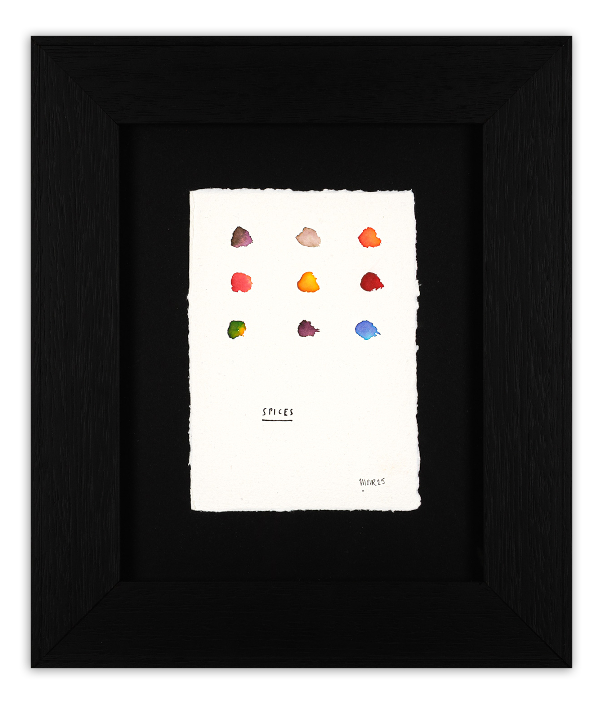 From Jim Moir’s Scran series. A delicate study of spice-like colour spots, each painted with subtle shifts and soft edges.